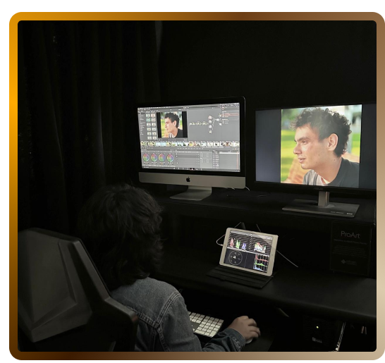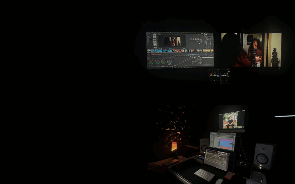 Trabajamos con herramientas profesionales como DaVinci Resolve para color y Pro Tools para sonido, entregando materiales listos para proyección o distribución.